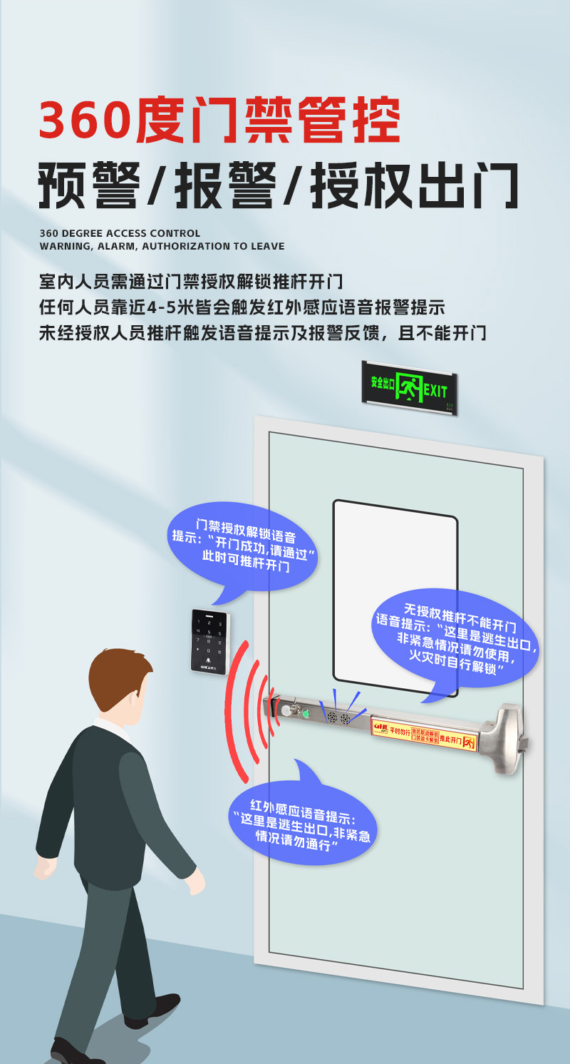 門(mén)禁離合型逃生門(mén)鎖 紅外感應(yīng)語(yǔ)音報(bào)警推桿鎖 消防聯(lián)動(dòng) 門(mén)未關(guān)提醒 金捍力