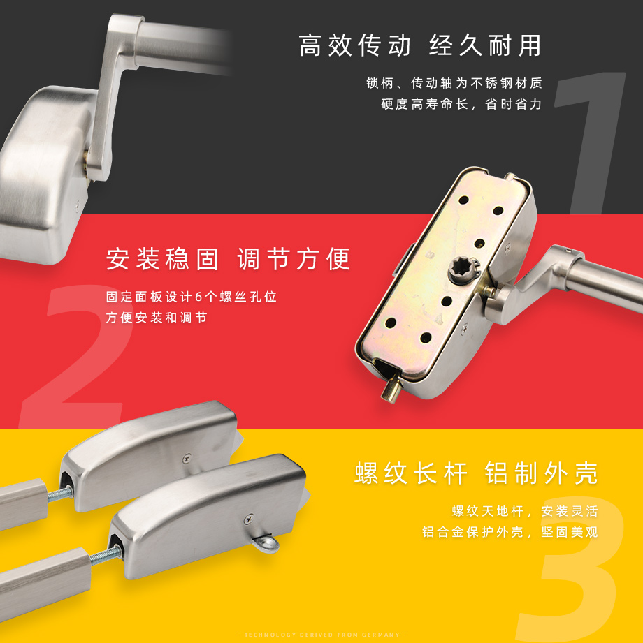 產(chǎn)品介紹:德國(guó)技術(shù),美觀高端且可靠;輕松下壓推桿即可快速開門;三鎖點(diǎn),安全牢靠;全不銹鋼材質(zhì),經(jīng)久耐用。