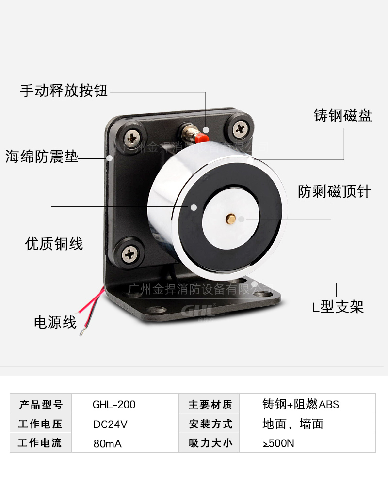 產(chǎn)品介紹:1、GHL-200系列防火門電磁釋放器為易裝型、強(qiáng)力型配置;