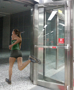 逃生門鎖,顧名思義,就是用于緊急情況逃生疏散用。緊急情況下人員可通過推壓鎖杠即可輕松外出,如下圖。