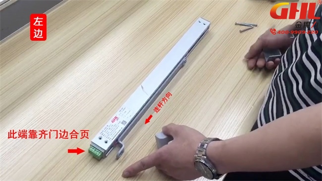 1、滑軌連桿指向的尾端,則靠齊安裝在對應(yīng)的門邊合頁?,F(xiàn)在安裝為右邊。
