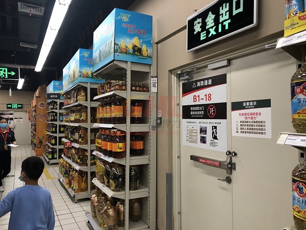 在廣州一家位于萬達(dá)廣場負(fù)一層的華潤萬家商場看到,整個(gè)營業(yè)范圍內(nèi),位于入口區(qū)、收銀臺區(qū)、生鮮區(qū)、糧油區(qū)、糖果區(qū)、百貨區(qū)、倉管區(qū)、等區(qū)域均設(shè)置有對外疏散的通道防火門,每道通道門都安裝了“GHL-YB916AL”型門禁型語音報(bào)警推桿鎖系統(tǒng),推桿鎖與門禁、消防系統(tǒng)聯(lián)網(wǎng)控制,每一把鎖都貼有明顯的“緊急情況,推壓此桿開門并報(bào)警”警示標(biāo)識,警示無關(guān)人員在平時(shí)不得從此通過,萬一有人攜商品通過立即激動(dòng)報(bào)警裝置,將引導(dǎo)商場管理人員到廠檢查處理。緊急情況時(shí)可以立即推鎖,報(bào)警引導(dǎo)從此疏散逃生。如有人從外面撬門非法闖入,也會(huì)產(chǎn)生報(bào)警警示并反饋信號到值班室。而整個(gè)報(bào)警系統(tǒng)是鎖閉而不是“鎖死”,是可控二不是失控。