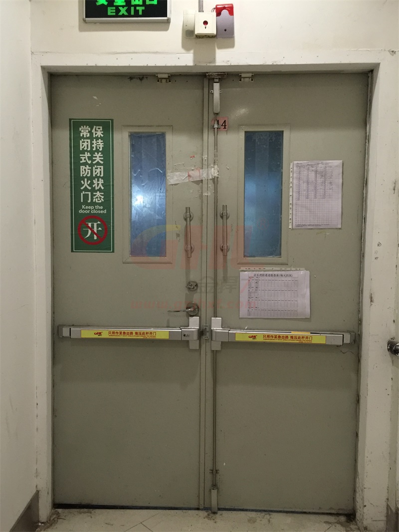 用身體某個部位一壓推杠,鎖即可打開,常用于消防通道的防火門上,實現(xiàn)發(fā)生火災時緊急逃生功能,現(xiàn)應用于人口密集的場所。