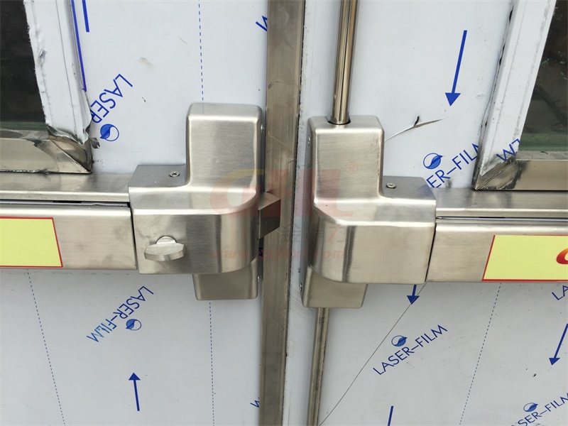 而防火門上面安裝的北京推桿鎖(又叫逃生門鎖、消防通道鎖),是解決這個問題不可缺少的逃生設備。在緊急情況時,建筑里面的人員用手或身體任何部位推壓逃生鎖上的壓桿,即可將門鎖開啟,非常容易地進入消防通道逃生。平時關上門,又能有效地防止建筑外部人員未經許可從逃生通道中進入建筑內部。因而提高和保障了建筑物的安全性與逃生功能。