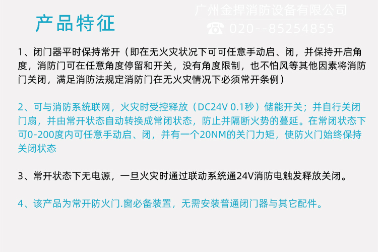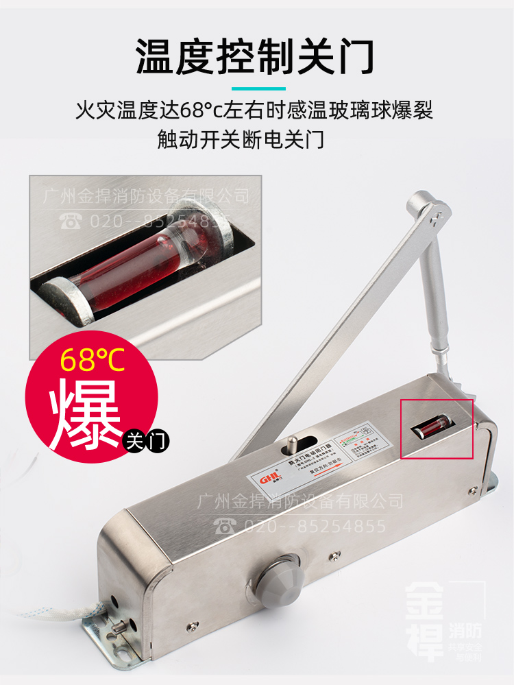 4、溫控功能現(xiàn)場環(huán)境溫度高于68℃,閉門器自動(dòng)關(guān)閉;
